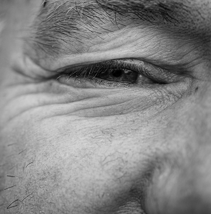 - Schnitt unter dem Wimpernkranz, Entfernung von überschüssigem Fettgewebe und überschüssiger Haut